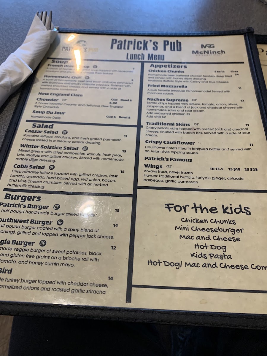 With rave reviews highlighting excellent service and noteworthy dishes, including hearty chili and amazing sweet potato fries, Patrick's Pub is undoubtedly a culinary gem where great food meets a delightful ambiance.